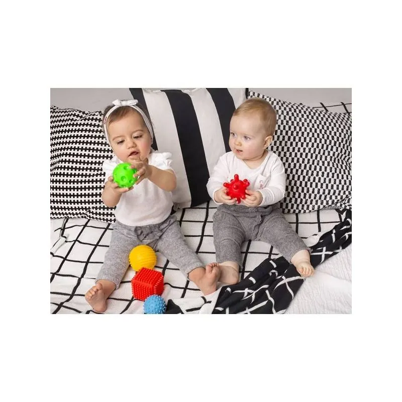 Naudojamos skirtingos medžiagos faktūros, suteikia lytėjimo pojūčius, kurie lavina riešo ir pirštų judesių tikslumą;