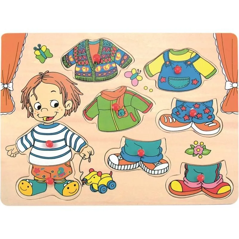 Dėlionės detalės - berniuko Sebastiano drabužiai, kuriais galima aprengti jį.