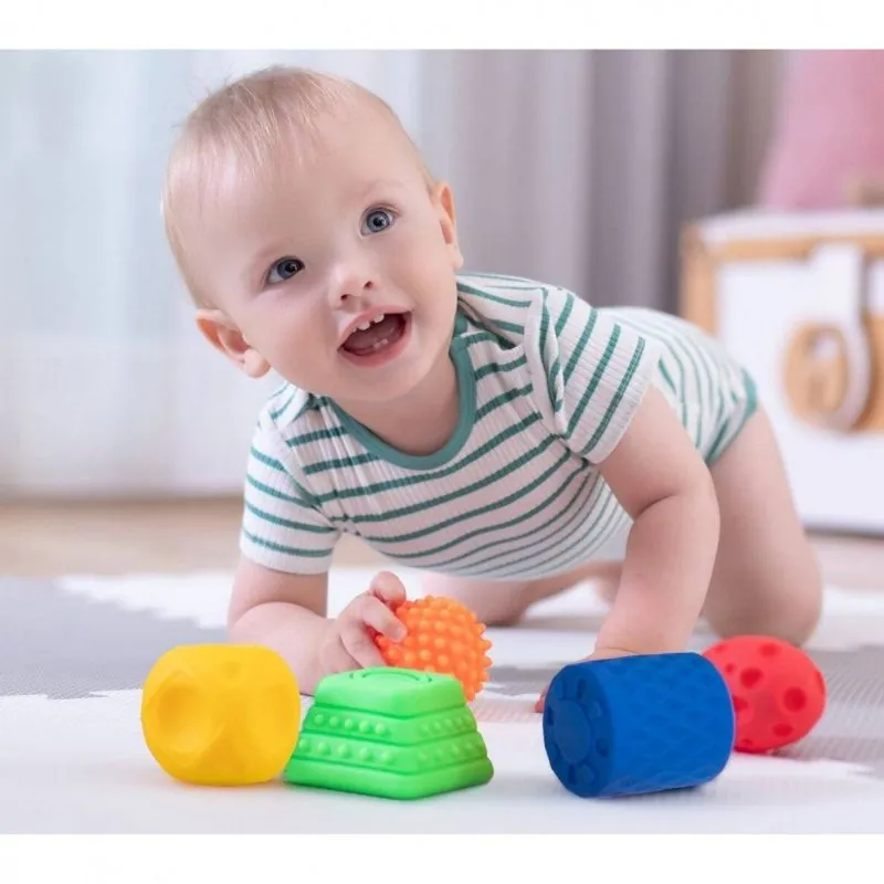 Naudojamos skirtingos medžiagos faktūros, suteikia lytėjimo pojūčius, kurie lavina riešo ir pirštų judesių tikslumą;