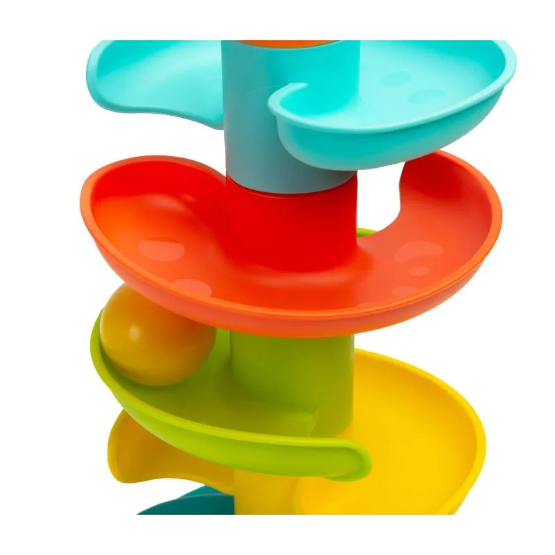 Spalvingas 5 lygių spiralės formos bokštas baigiasi besišypsančio liūto su krepšiu atvaizdu, nuo kurio pradedami rutuliukai slysti takeliu.