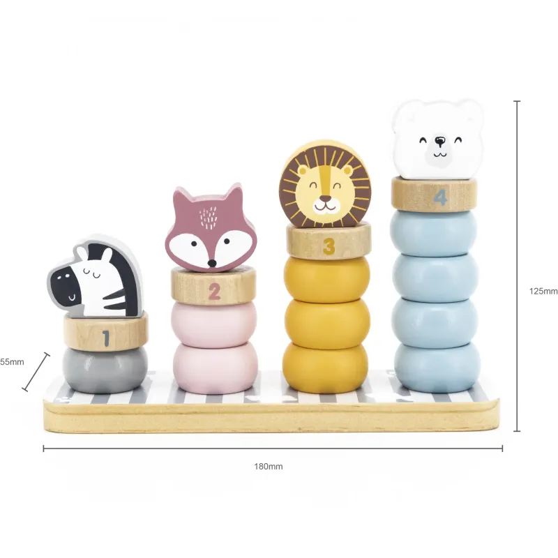 Visas rinkinys pagamintas iš buko medienos ir nudažytas netoksiškais, prislopintų spalvų dažais, kurie pritrauks dėmesį ir skatins žaisti, kartu suteikdami daug džiaugsmo;