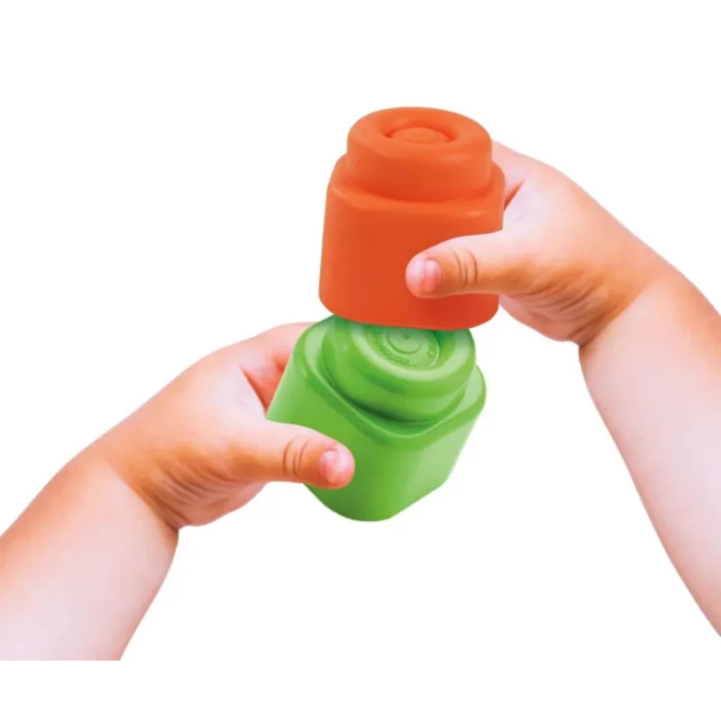 Sensoriniuose kvadratuose yra Clemmy kaladėlių formos, leidžiančios vaikams džiaugsmingai derinti ir kurti nesuskaičiuojamus bokštus;