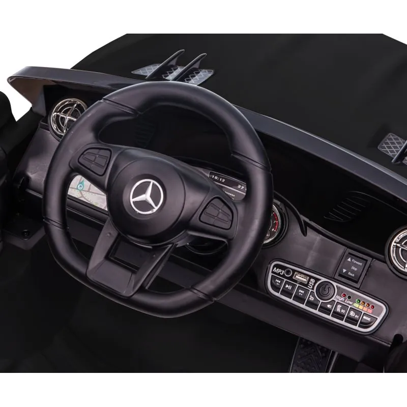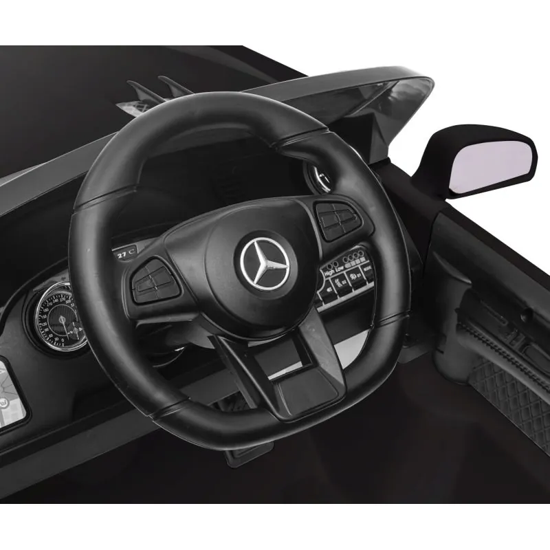 Mercedes licencijuotas automobilis, garantuoja didelį dėmesį smulkiausioms detalėms ir naudojamų medžiagų kokybei. Tinkantis vaikams nuo 3 metų amžiaus.