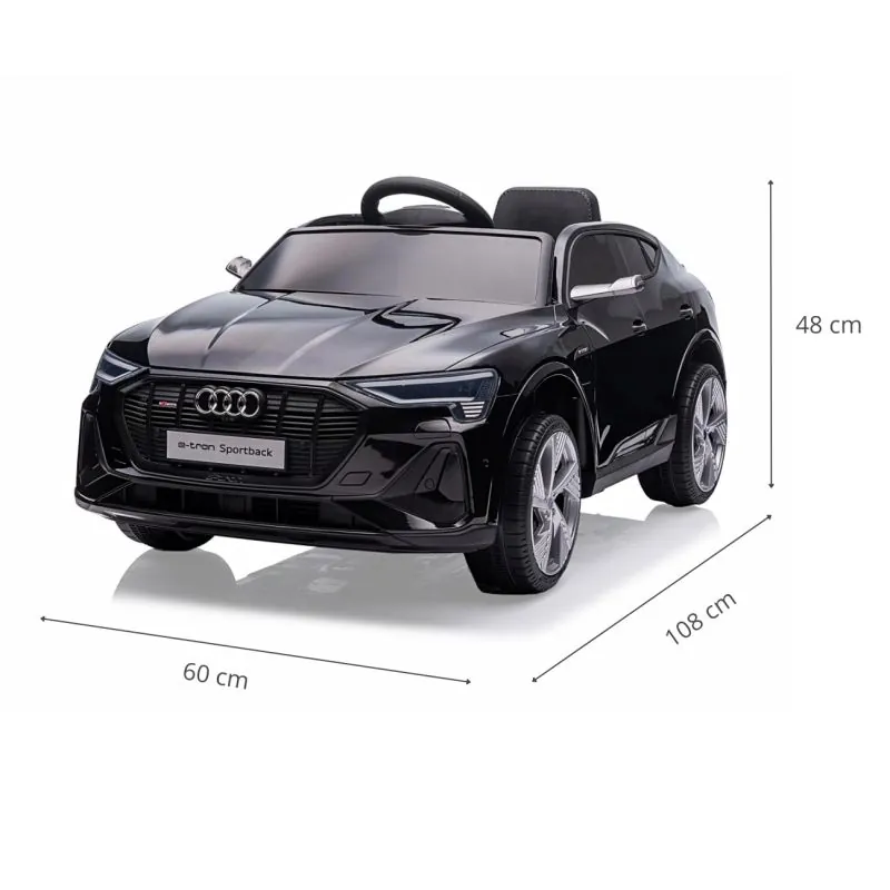 Transporto priemonė turi originalią „Audi“ licenciją ir yra mini garsiojo „E-Tron Sportback“ modelio kopija, pasižyminti akį traukiančia išvaizda ir stilistinėmis detalėmis. Baterija varomas automobilis, kaip ir jo originalas, yra sportiško dizaino, pagaminta atsižvelgiant į smulkiausias detales iš aukščiausios kokybės medžiagų, kurios pasižymi dideliu patvarumu ir saugumu. Valdykite elegantišką Audi E-Tron Sportback ir jauskitės kaip profesionalus sportinio automobilio vairuotojas.