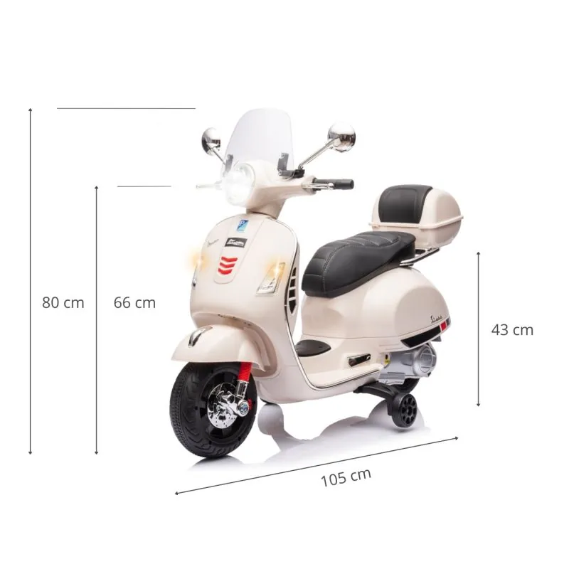 Elegantiška Vespa motorolerio kopija, sukurtas vaikams svajojantiems apie nuotykius ant dviejų ratų;