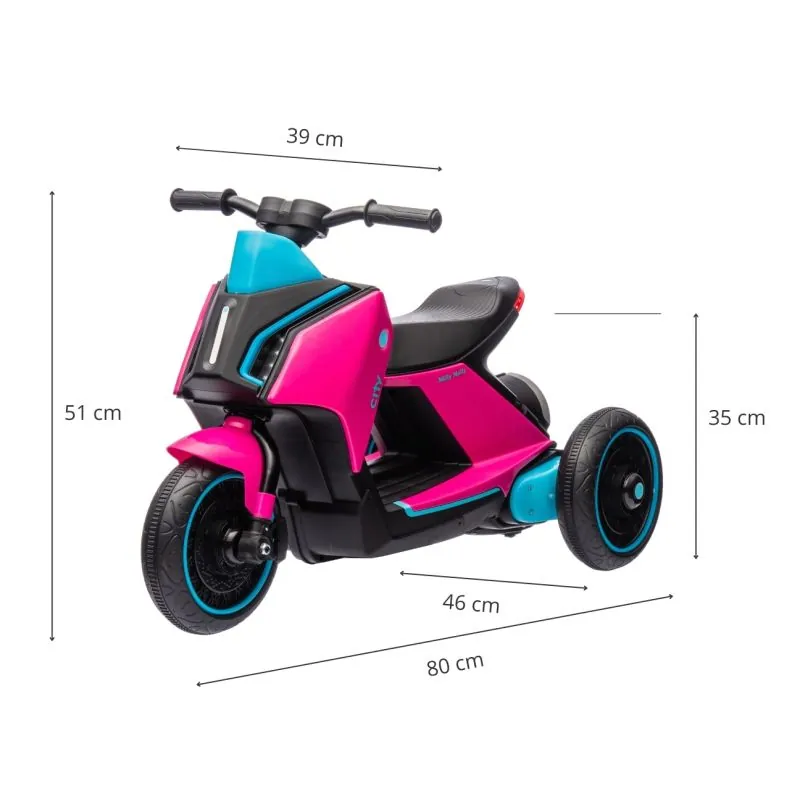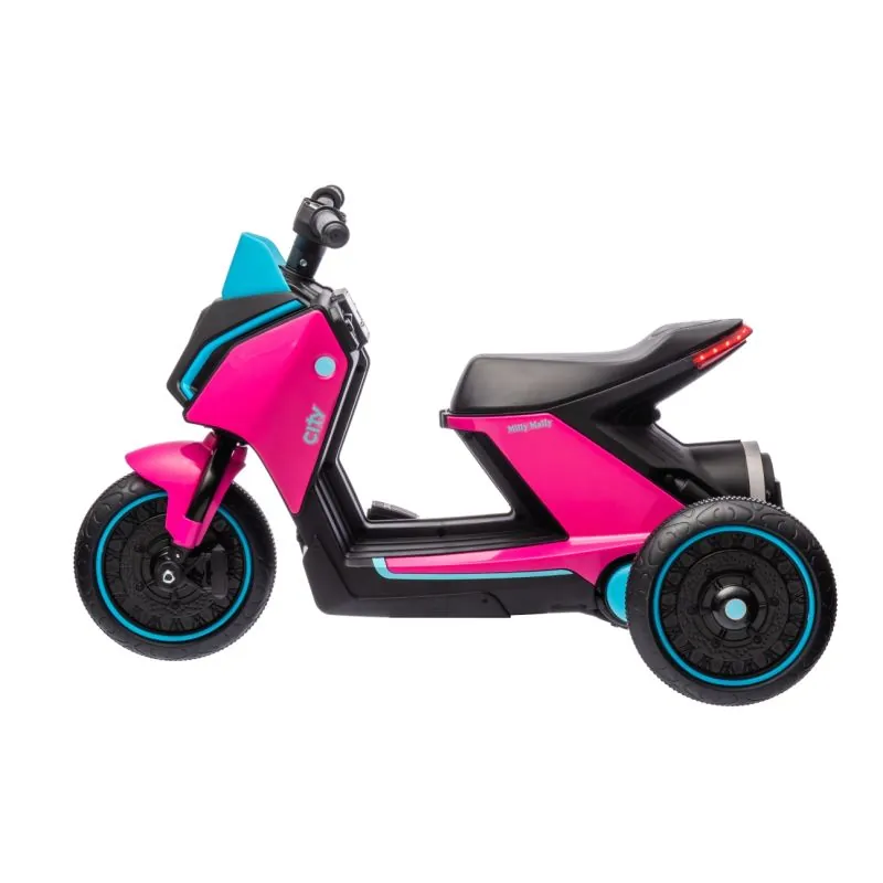 Patrauklaus dizainos elektrinis triratis motociklas CITY. Tinkamas vaikams nuo 24 mėnesių.