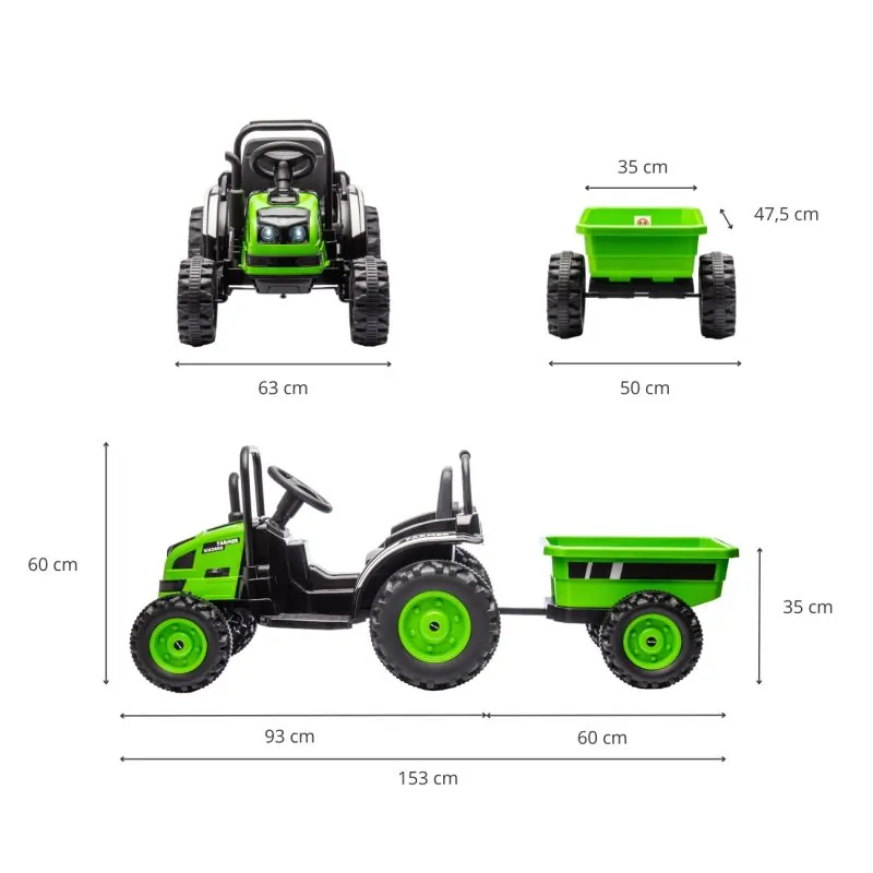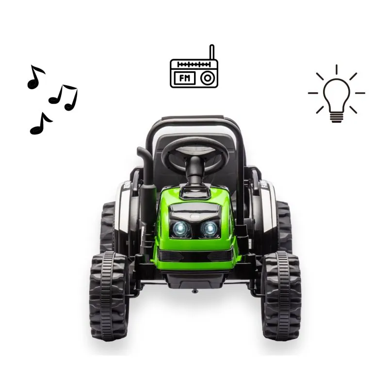 Elektromobilis traktorius su priekaba kuriame vaikas jausis kaip suaugęs ūkininkas. Rekomenduojamas vaikams nuo 3 metų.
