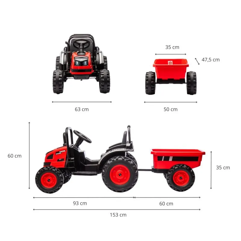 Elektromobilis traktorius su priekaba kuriame vaikas jausis kaip suaugęs ūkininkas. Rekomenduojamas vaikams nuo 3 metų.