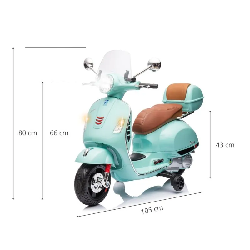 Elegantiška Vespa motorolerio kopija, sukurtas vaikams svajojantiems apie nuotykius ant dviejų ratų;