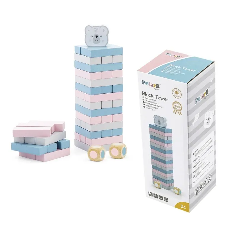 Kaladėlių bokšto stalo žaidimas – naujas pastelinių spalvų variantas iš VIGA baltojo lokio serijos.