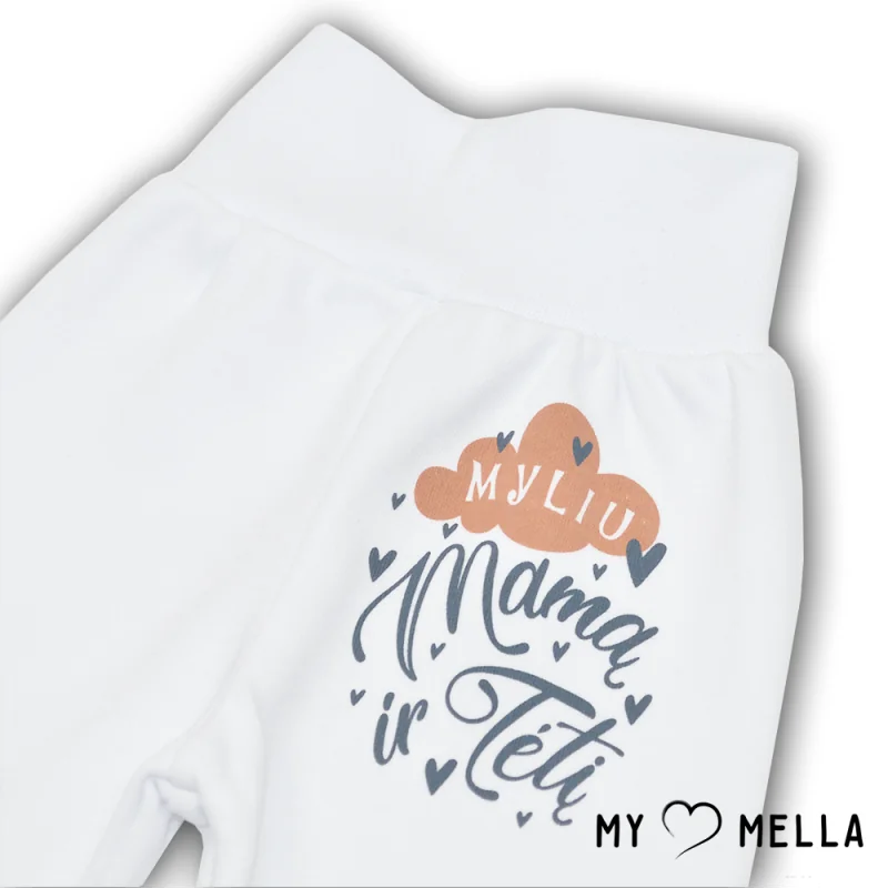 Žaismingos ir stilingos kelnytės su pėdutėmis kūdikiui "Myliu".