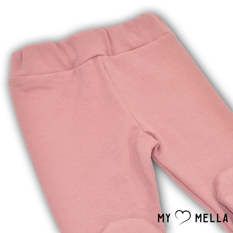 Itin švelnios ir šiltos rausvos pudros spalvos kelnės su pėdutėmis kūdikiams