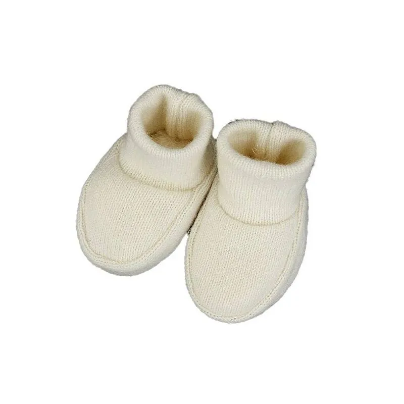 Šilti Merino vilnos, paminkštinto pado pirmieji kūdikio batukai.