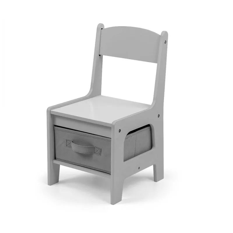 Daugiafunkcinių baldų komplektas vaikams: stalas ir dvi kėdės su tekstilinėmis daiktadėžėmis. Rekomenduojamas vaikams nuo 2 metų