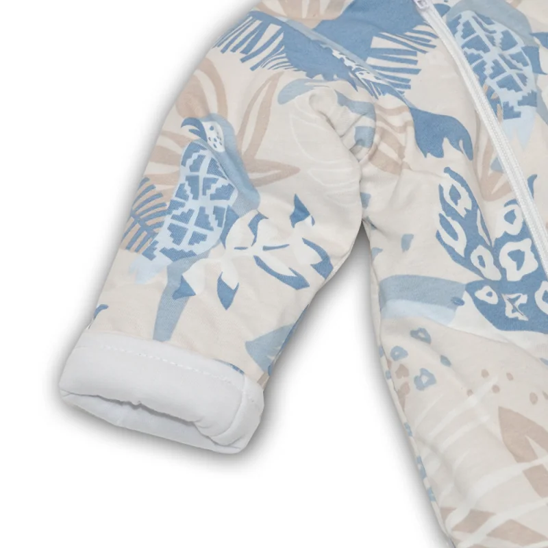 Pašiltintas 100% medvilnės kombinezonas kūdikiams su gobtuvu ir uždaromis kojytėmis.