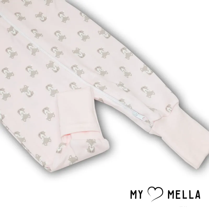Kombinezonas užlenkiamomis pirštinytėmis ir pėdutėmis su užtrauktuku per visą ilgį