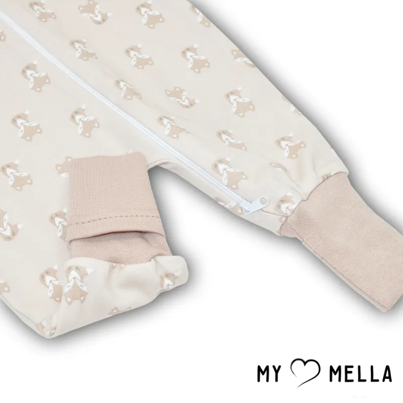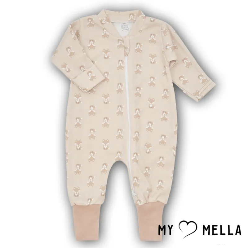 Kombinezonas užlenkiamomis pirštinytėmis ir pėdutėmis su užtrauktuku per visą ilgį