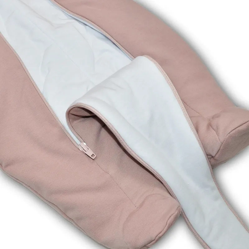 Pašiltintas 100% medvilnės kombinezonas kūdikiams su gobtuvu ir uždaromis kojytėmis.