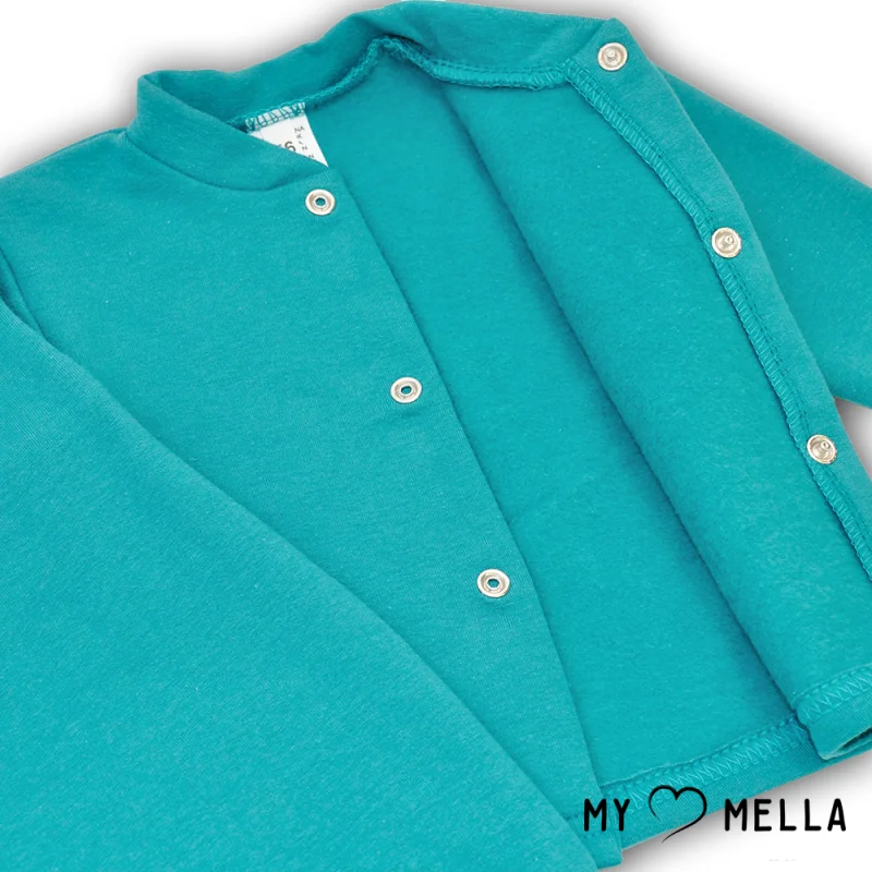Marškinėliai ilgomis rankovėmis priekyje susegami spaudėmis.