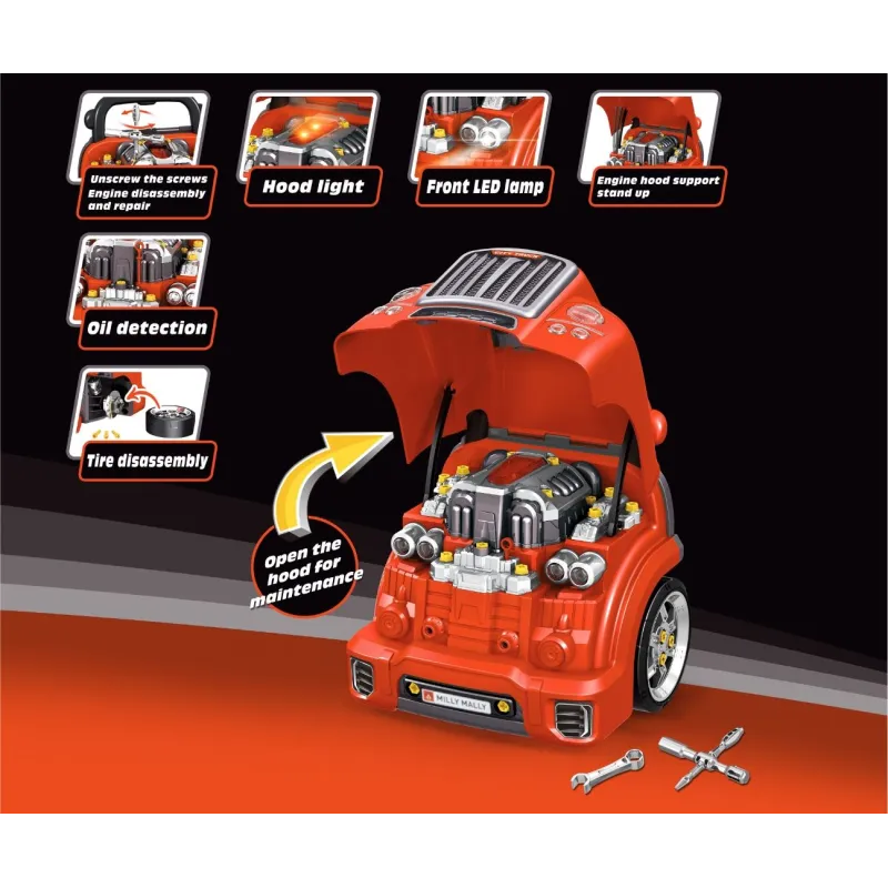 Šis realistiškas automobilio priekio modelis su atidaromu variklio dangčiu ir tiksliai atkartotu varikliu leidžia jiems savarankiškai surinkti ir išardyti jo komponentus;