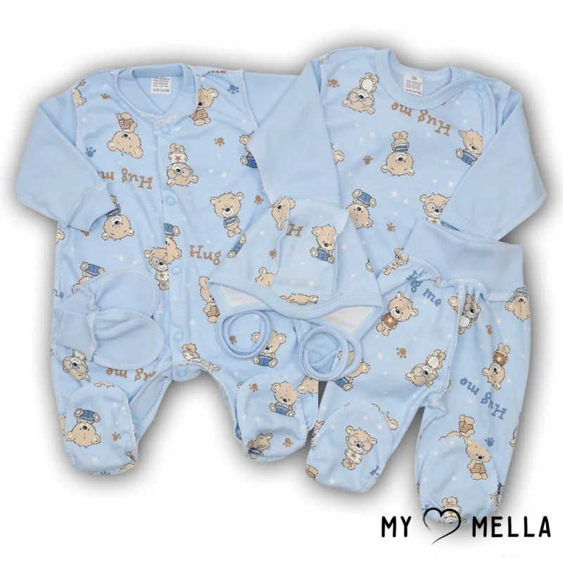 Minkštos medvilnės 5 dalių komplektukas kūdikiams ir naujagimiams.