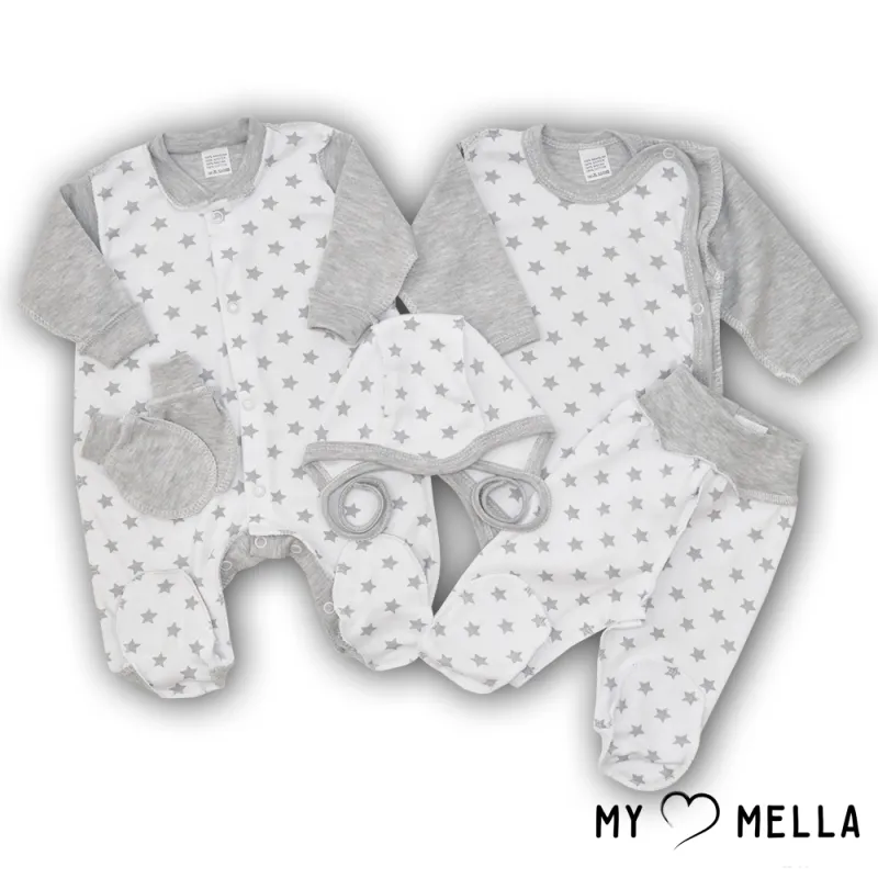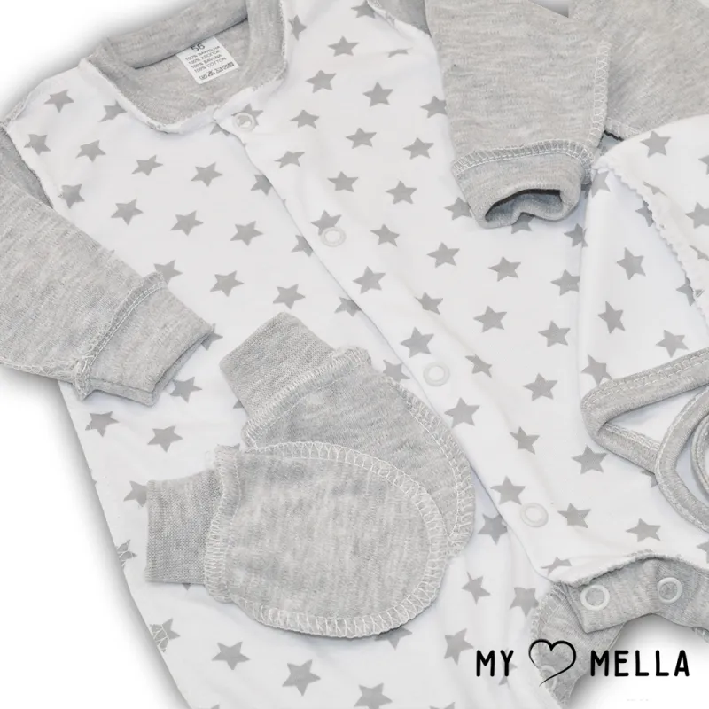 Naujagimio kraitelis penkių dalių "Stars", pilka, 56 cm.