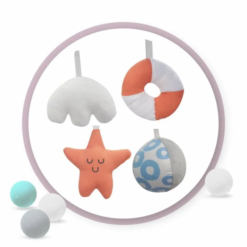 Jo dėka mažylis gali mokytis formų ir lavinti lytėjimo pojūtį, o žaisdamas su šiugždančiais žaisliukais su varpeliais pažinti skirtingus garsus ir spalvas.
