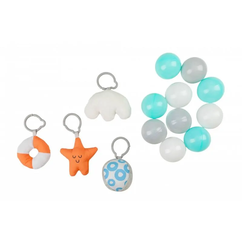 Rinkinyje 4 žaislai ir 15 kamuoliukų.