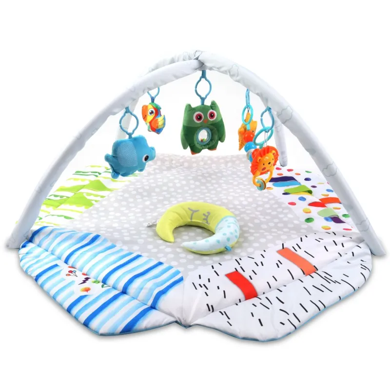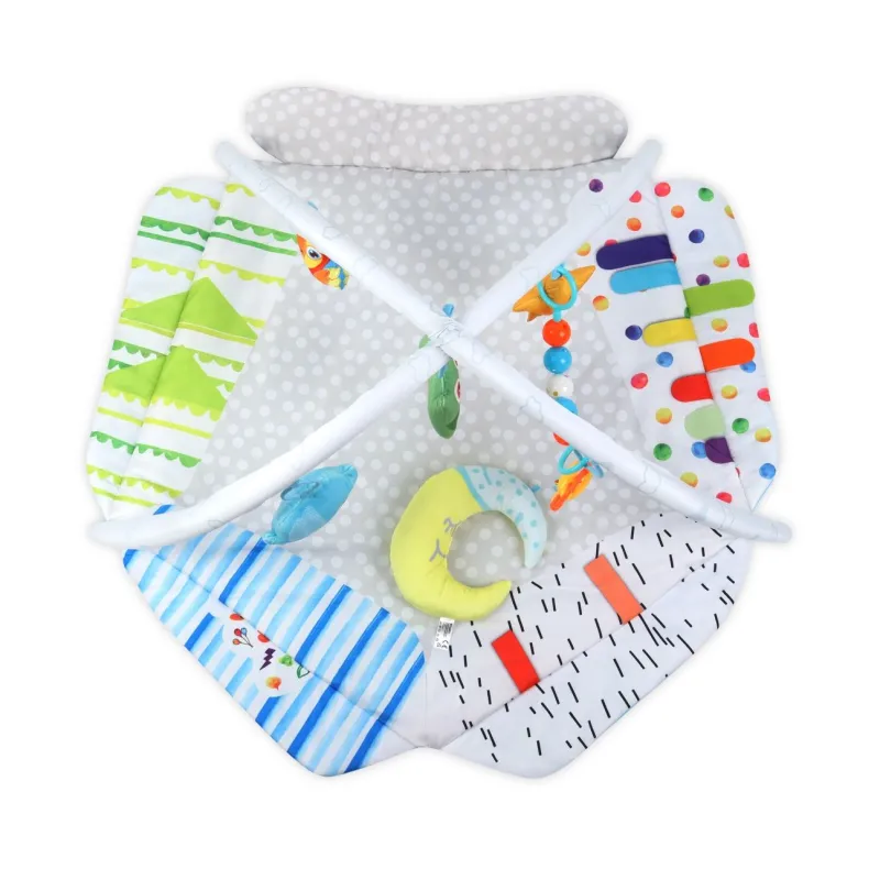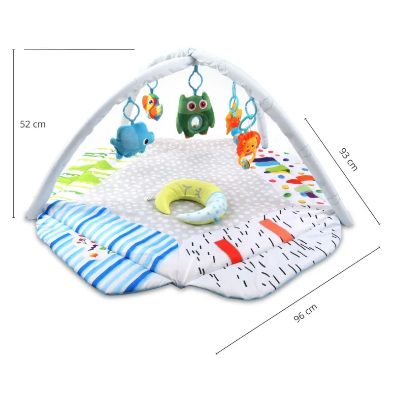 TinyMinpasaulis yra spalvingas žaidimų kilimėlis, kuris padeda jūsų vaikui vystytis per žaidimą ir sąveiką. Jis padeda jam išmokti suvokti ir atpažinti formas. Skatina aktyvų ir kūrybišką žaidimą. Pakabukai lavina regėjimo ir lytėjimo pojūčius, taip pat motorinę koordinaciją.