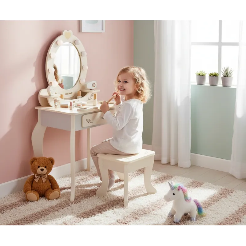Elegantiškas „Elly“ kosmetinis staliukas, sukurtas galvojant apie mažiausius, yra puikus būdas lavinti vaizduotę, kūrybiškumą ir žaismingai mėgdžioti suaugusiuosius. Skirtas vaikams nuo 3 metų amžiaus.