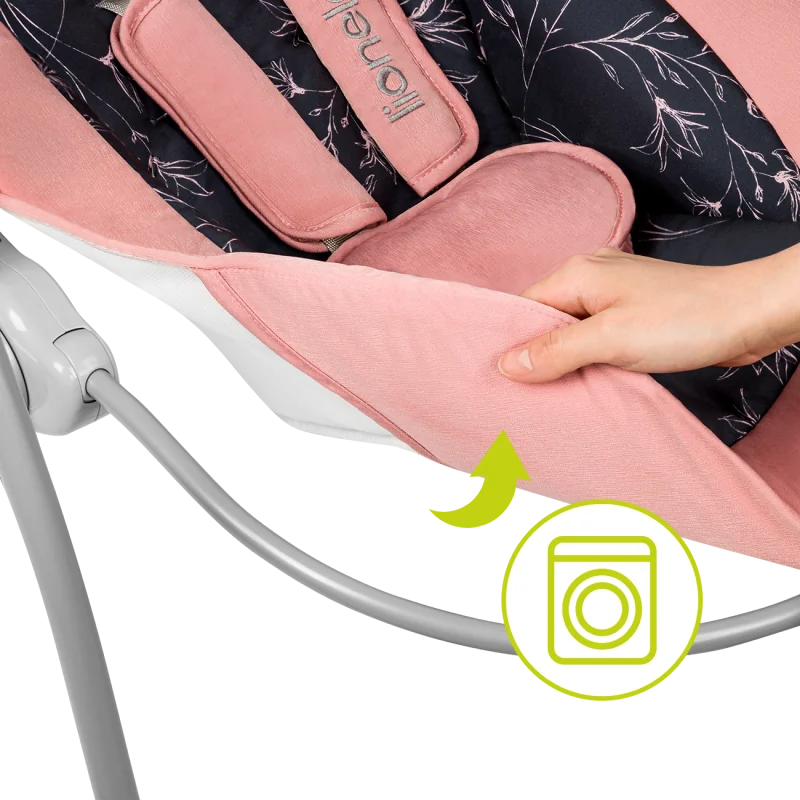 5 siūbavimo greičiai. Galima siūbavimo tempą reguliuoti pagal vaiko nuotaiką.