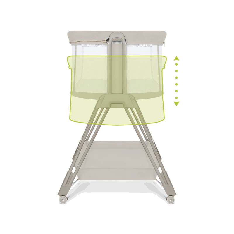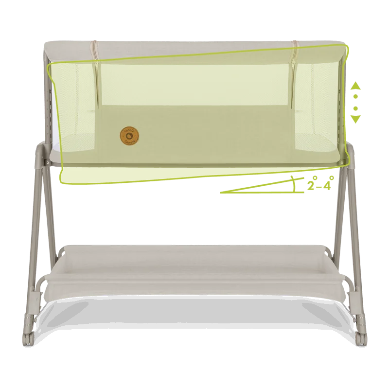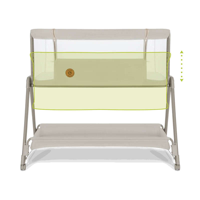 Išlankstyts lovelės matmenys: 97x62x73-87,5 cm (žemiausio-aukščiausio aukščio nustatymas)