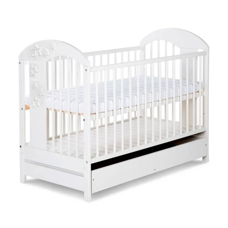 Kūdikių lovytė Klupš Radek su žvaigždutėmis, stalčiumi, išimamais strypeliais ir 3-jų aukščio lygių dugnu