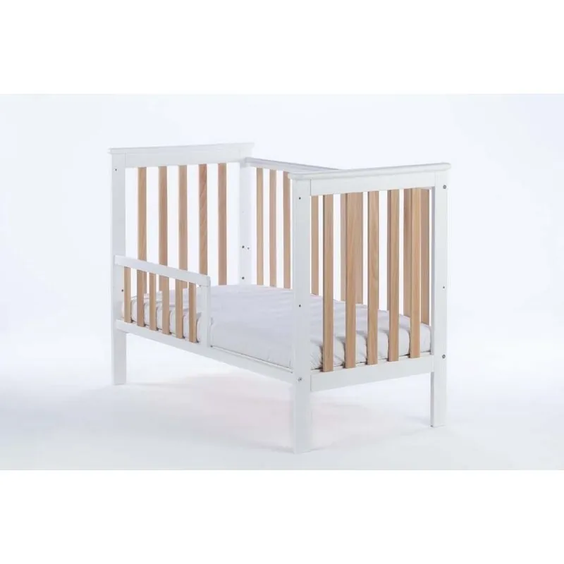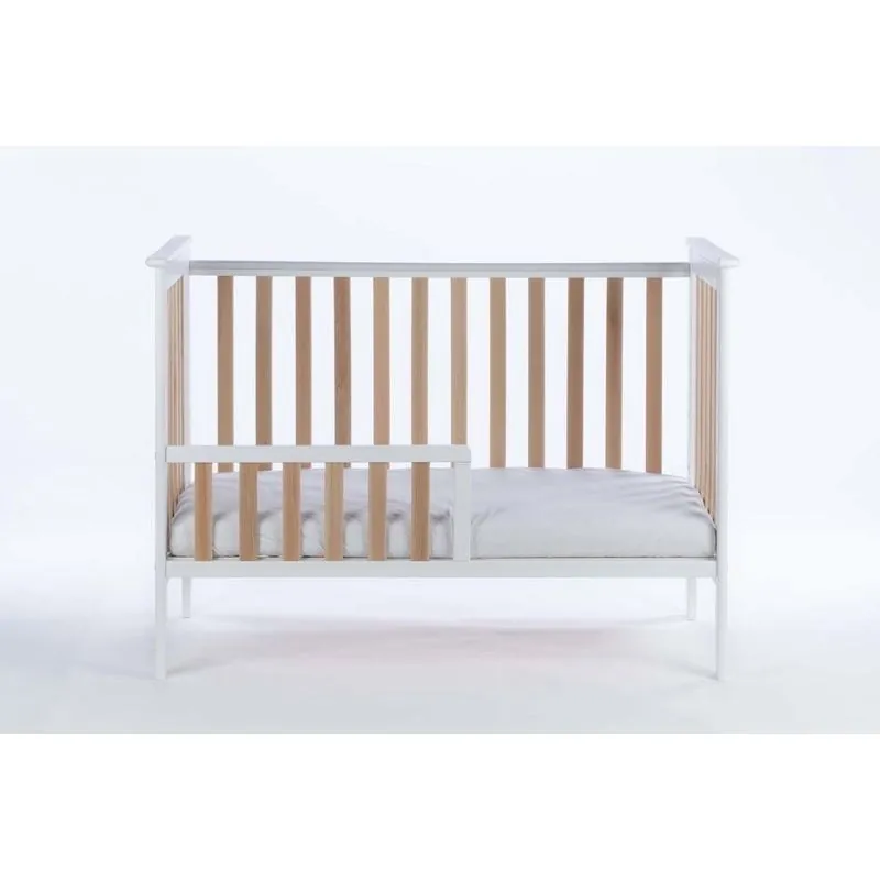 Drewex lovytė iš pušies ir buko medienos su nuimamu šonu. Vaikiškos lovytės matmėnys 120x60 cm.