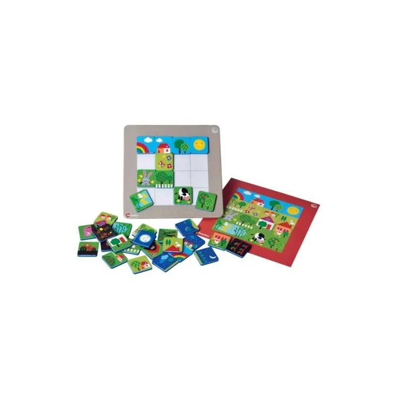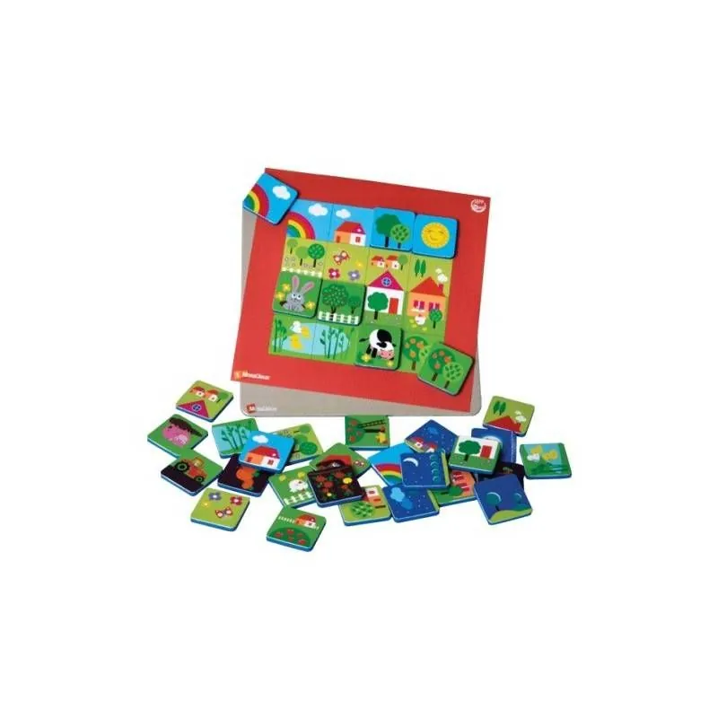 Dėliodami magnetukus ir kurdami kaimo scenas vaikai galės lavinti savo fantaziją, kalbėjimo ir istorijų pasakojimo įgūdžius.
