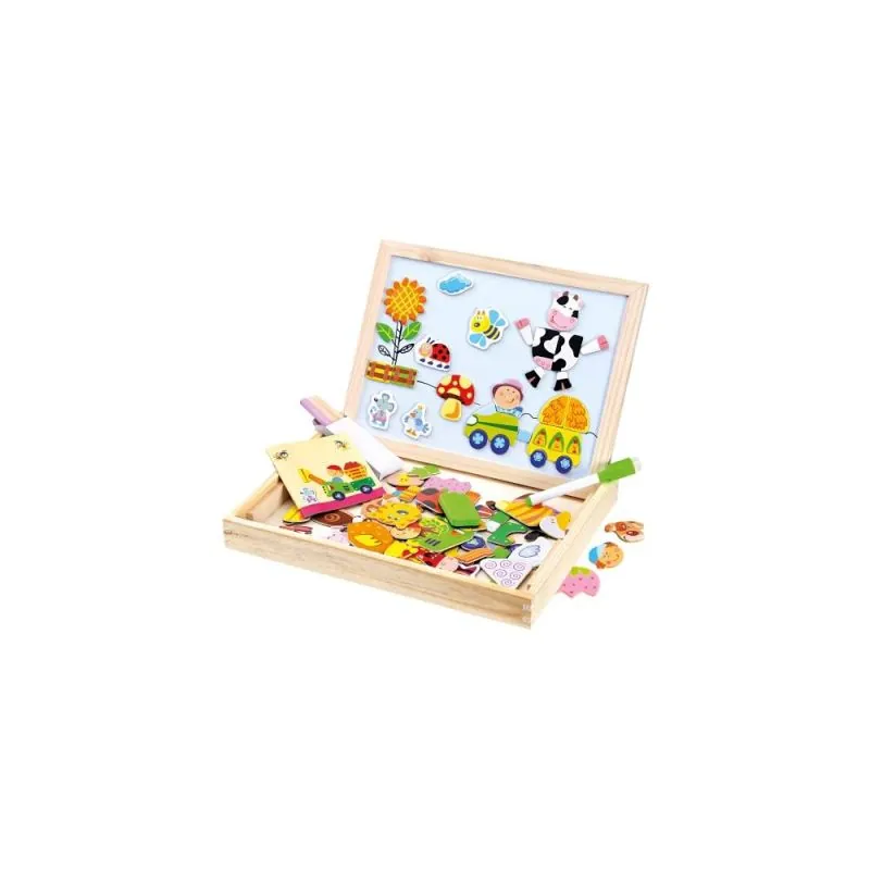 Įdomi ir spalvinga magnetinė dėlionė, ūkininko fermos tema. Leis vaikui iš įvairių detalių sudėti paveikslėlius ir apdailinti savo piešiniais.