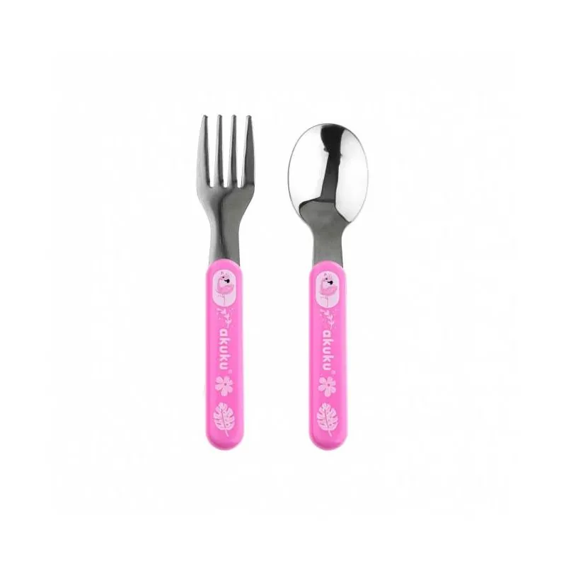 Akuku nerūdijančio plieno šaukštas ir šakutė, A0101-PINK