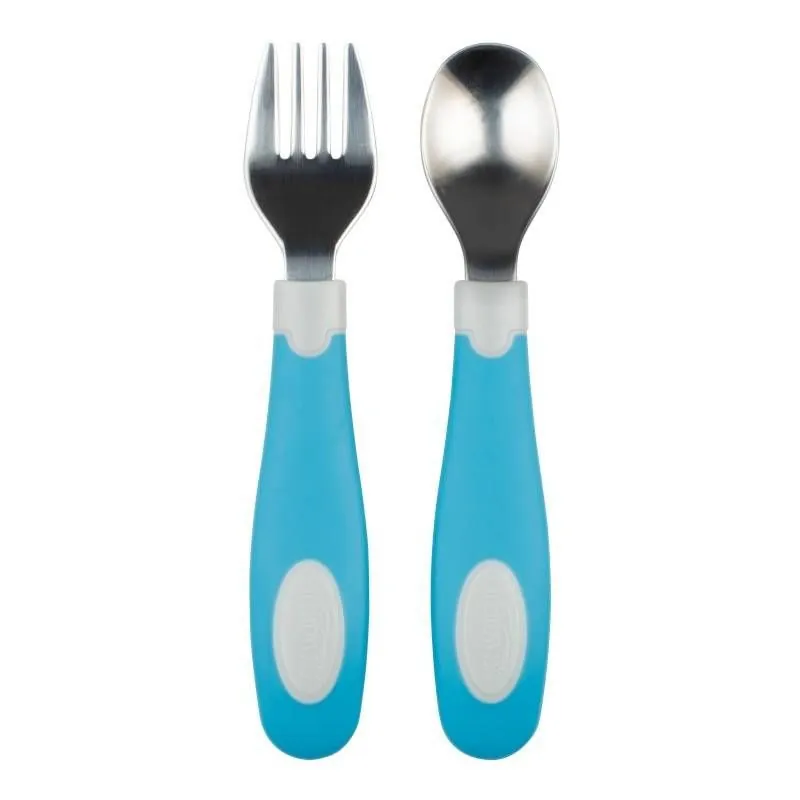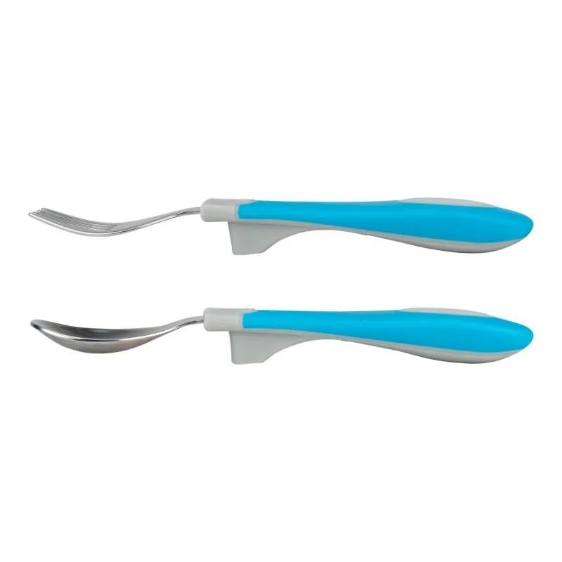 Leiskite paaugusiam vaikui pačiam ugdyti valgymo įgūdžius su neslystančiais šakute ir šaukšteliu.