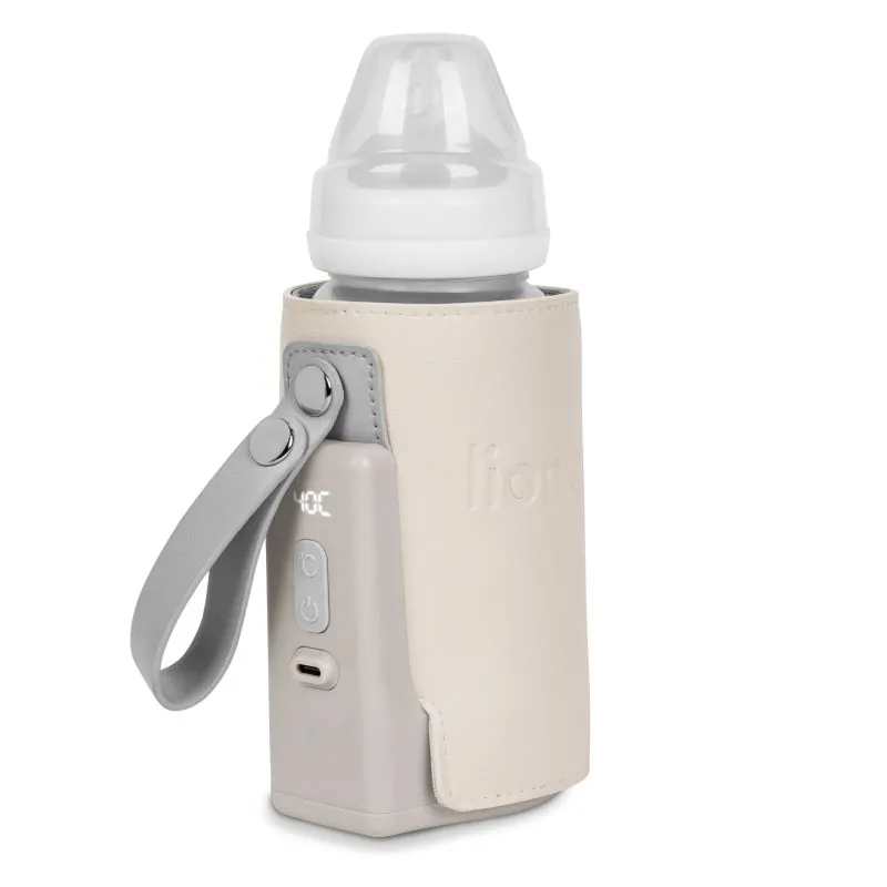 Patvarus ir malonus liesti odos skydelis leidžia gerti pieną iš buteliuko, uždengto šildytuvu, kuris palaiko pastovią pieno temperatūrą žiemos pasivaikščiojimų metu. Patogų laikiklį galima pritvirtinti prie rankinės ar vežimėlio rėmo. Pritemdytos spalvos dera prie kitų modernių aksesuarų.