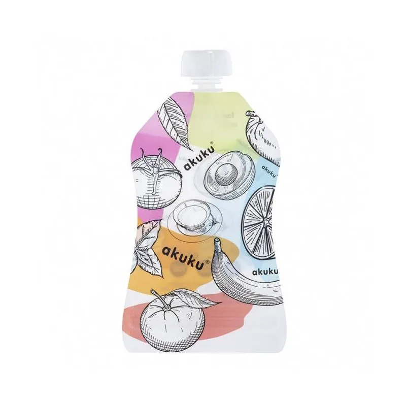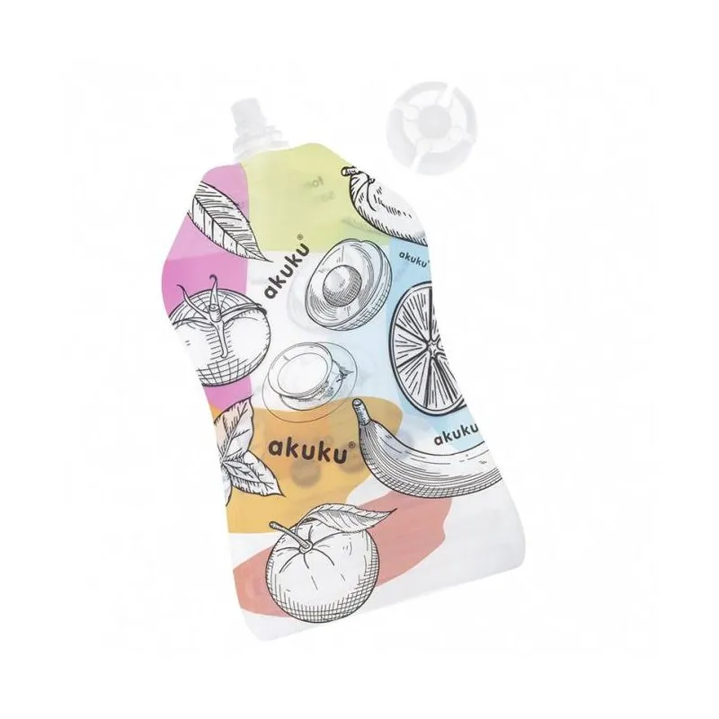Tiesiog užpildykite maišelį naminiu maistu arba mėgstamais užkandžiais, tokiais kaip tyrė, jogurtas, kokteilis, obuolių padažas ar vaisinis šaldytas slušis.