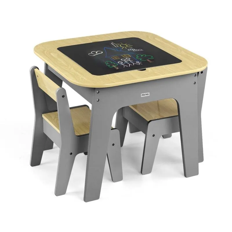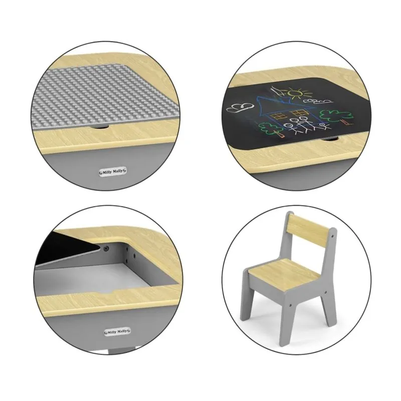 Milly Mally vaikiškų baldų komplektas Olaf -Stalas ir dvi kėdės, Grey Dark Grey