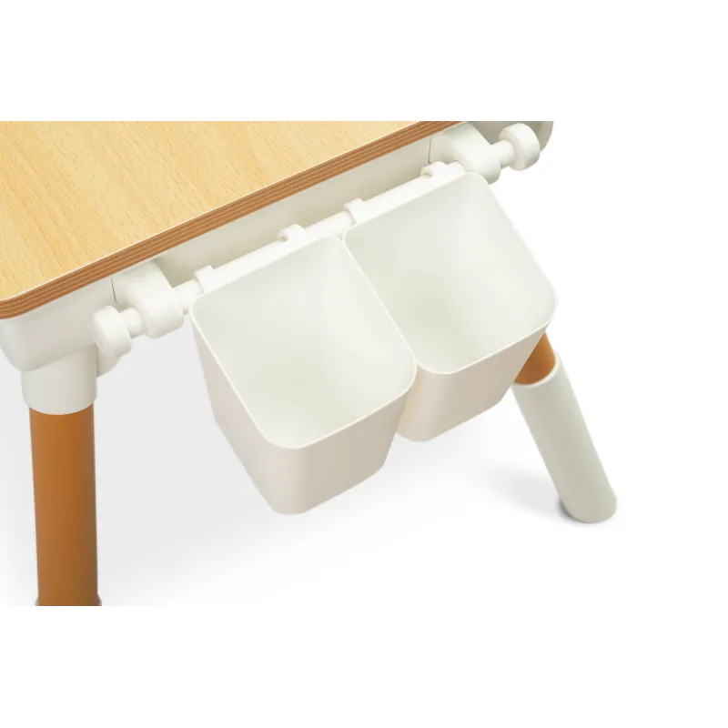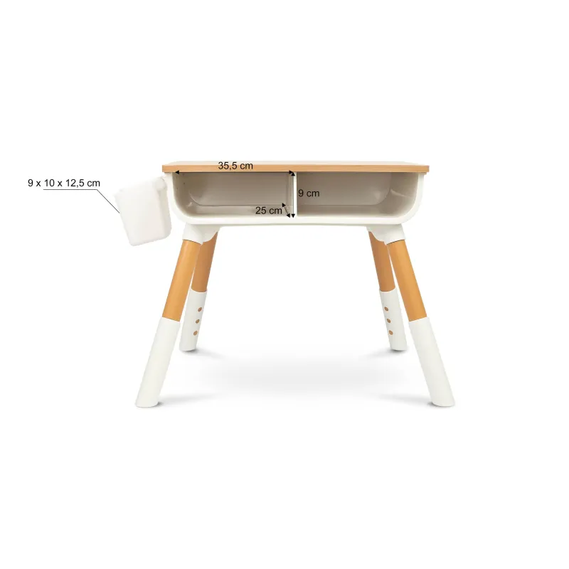 Stalas turi dvi įdubas po stalviršiu, todėl yra pakankamai vietos žaislams ir mokyklinėms priemonėms laikyti;