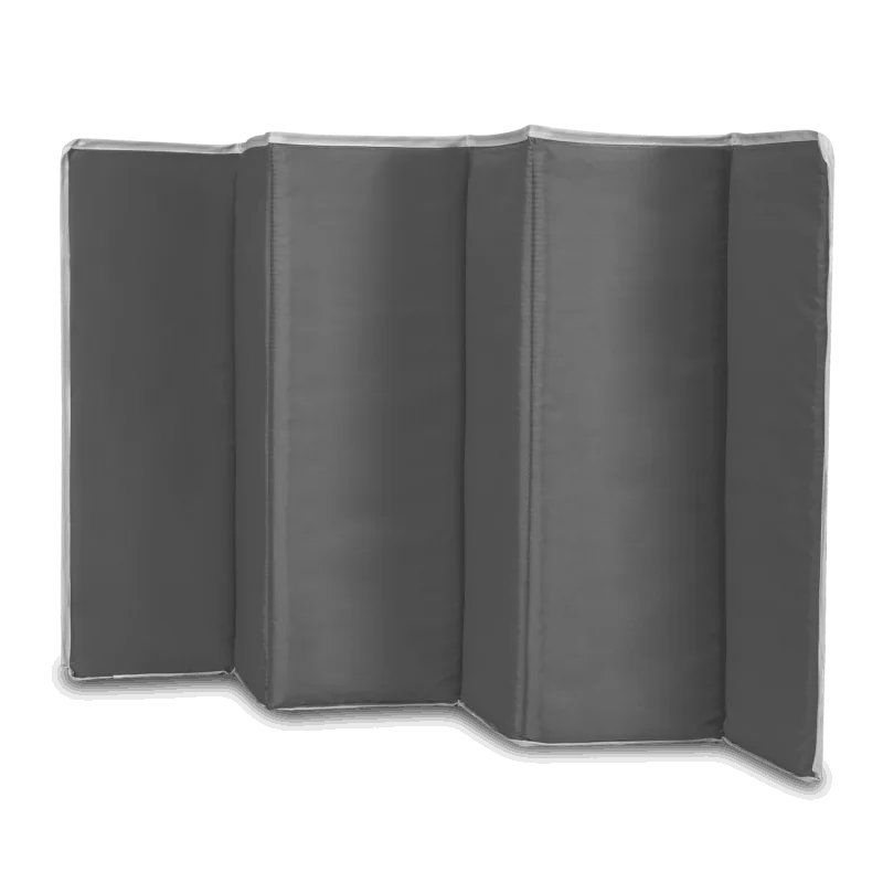 Minkštas sulankstomas čiužinys grūdintu dugnu tarnauja kaip pagrindas ir vieta žaisti.