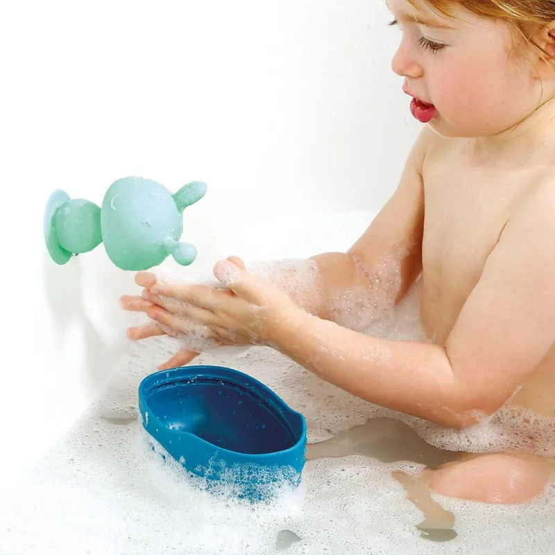 Silikoninis jūros triušelis su savo valtele kviečia mažylius tyrinėti vandenį;