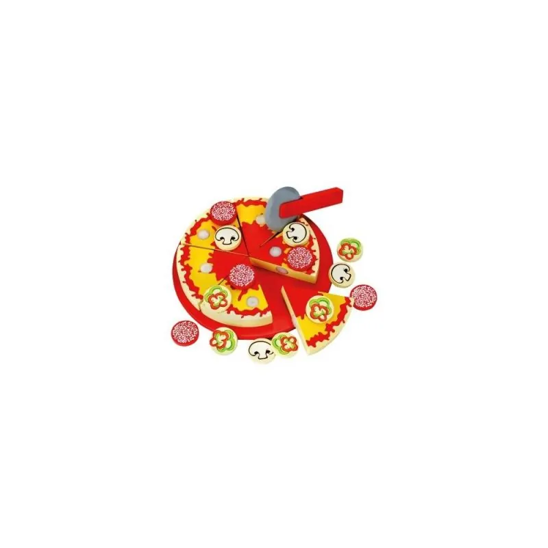 Mediniai maisto produktai: pica su priedais. Iš viso 31 dalis.