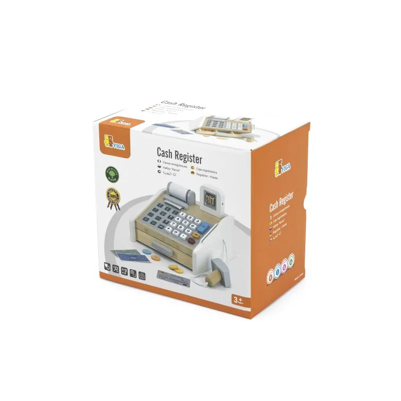 Medinis kasos aparatas yra su stalčiumi, monetomis bei kupiūromis, todėl tikrai paskatins vaikus ne tik žaisti kūrybinius žaidimus, bet ir mokytis skaičiuoti.