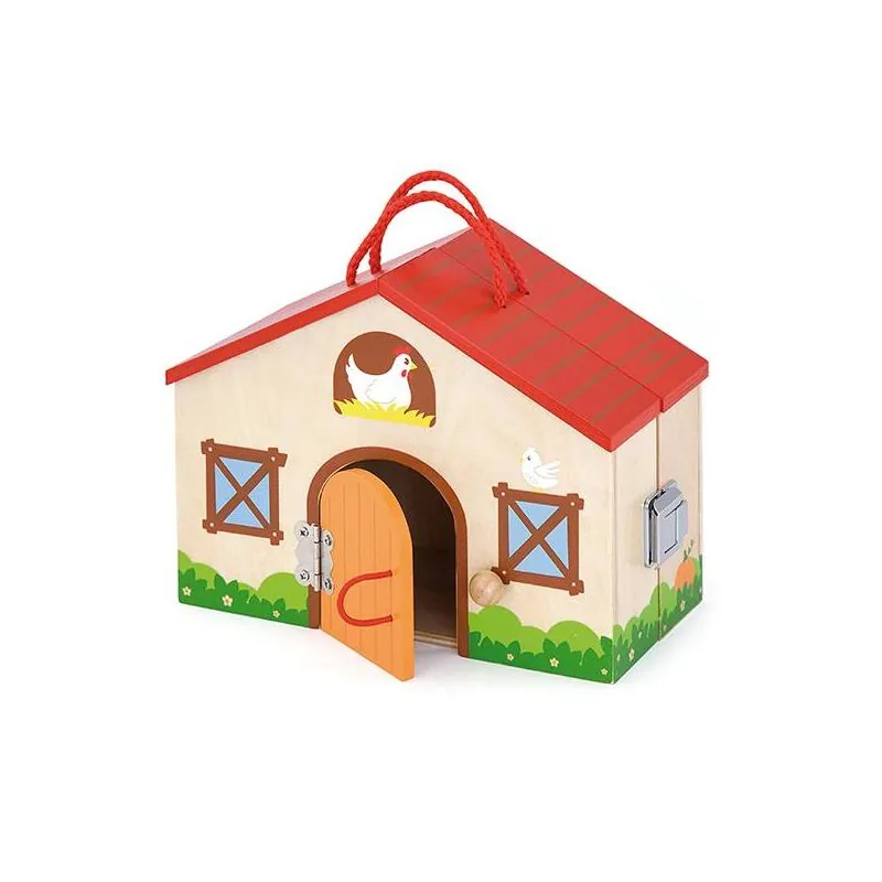 Medinė spalvota ferma išmokys vaiką žaisti su naminiais gyvūnais.