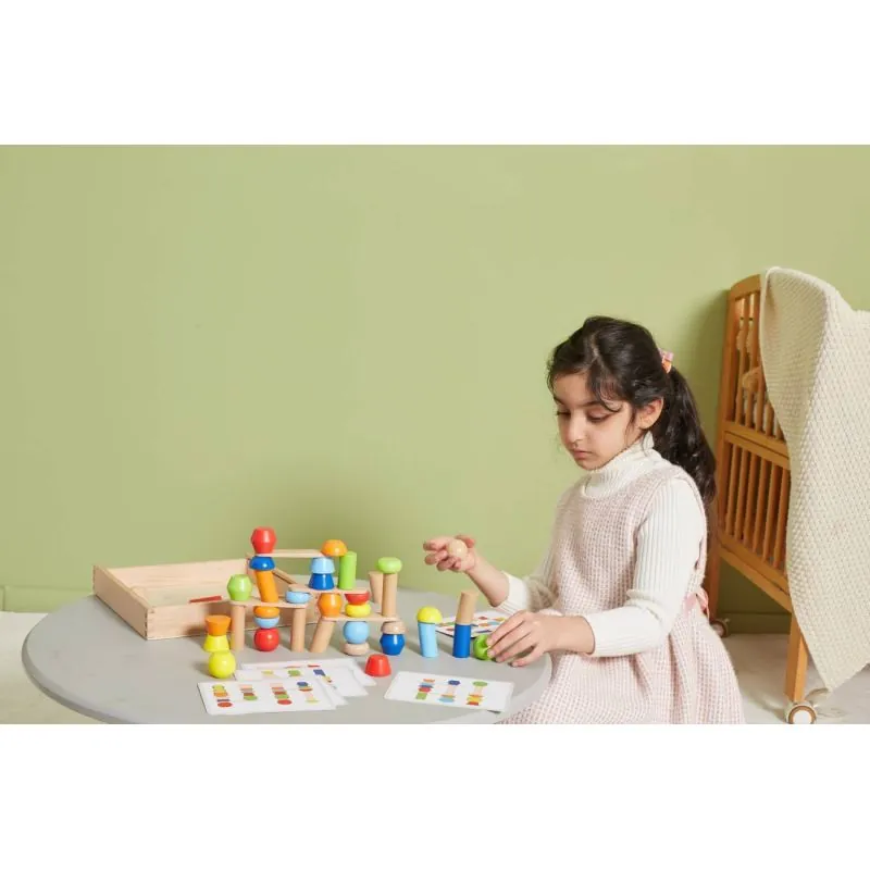 Visas daiktas pagamintas iš buko medienos ir nudažytas netoksiškais švelnių spalvų dažais, kurie patrauks akį ir skatins žaisti kartu suteikdami daug linksmybių.