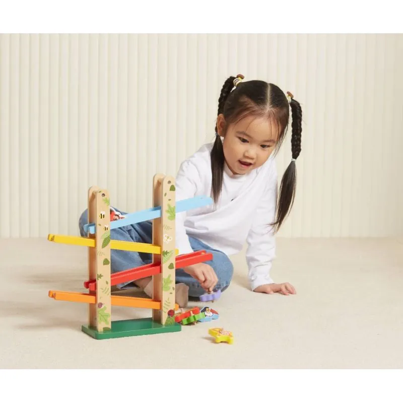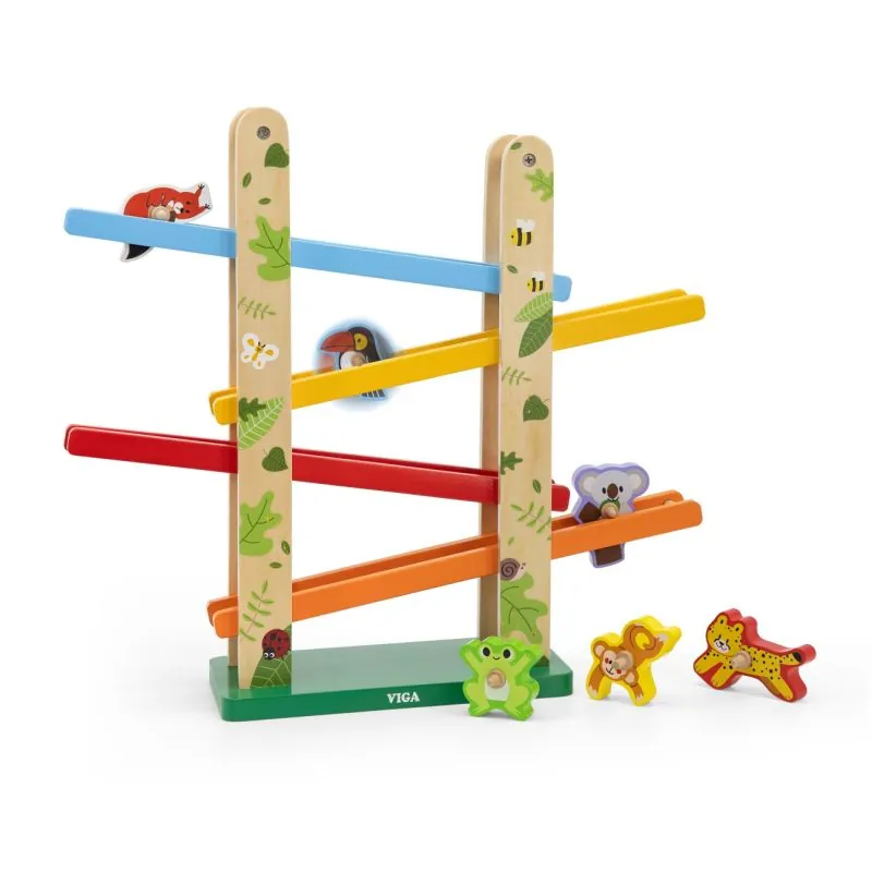Didelis 4 lygių platformos žaislas, nuo kurio galima nuleisti gyvūnų formos kaladėles;