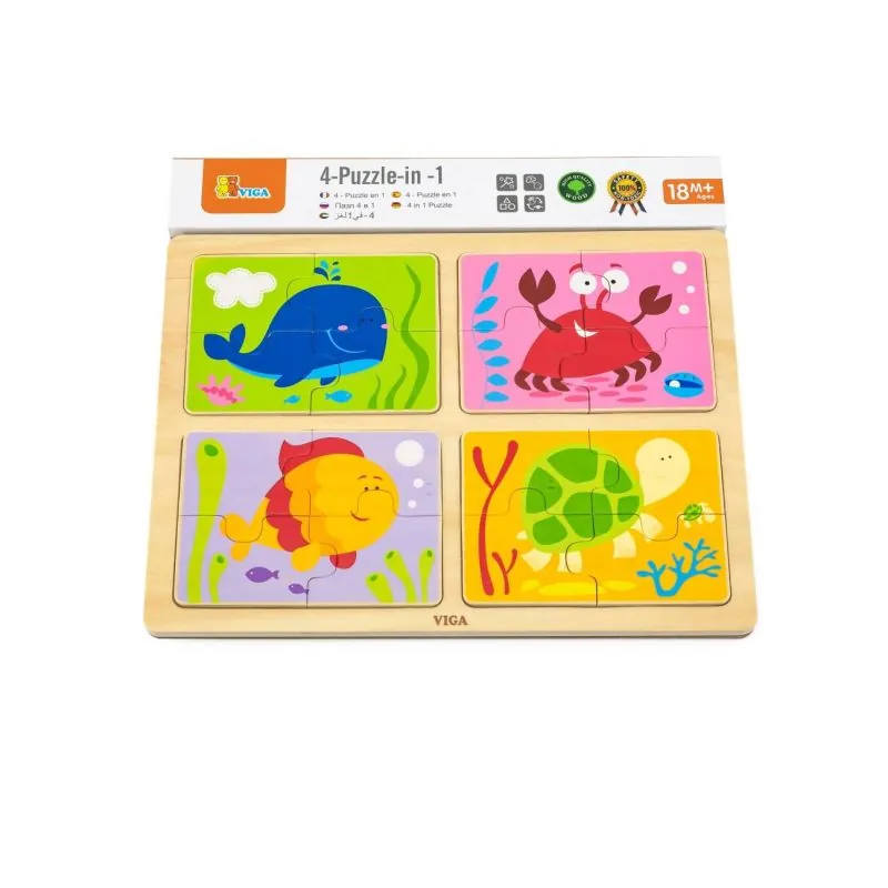 4in1 klasikinė dėlione. Žaislas rekomenduojamas vaikams nuo 18 mėnesių.
